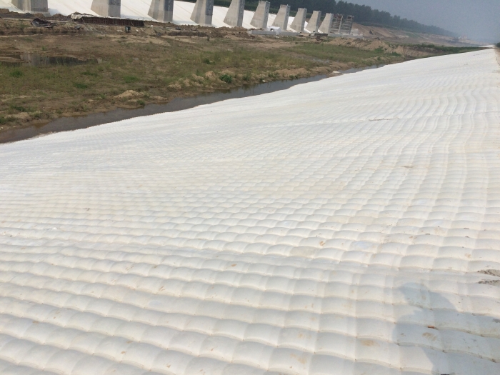 土工模袋可廣泛用于江、河、湖、海的堤壩護坡、護岸、港口、碼頭等防護工程。特別適用于沿江江堤、沿海海岸等區域的防護。